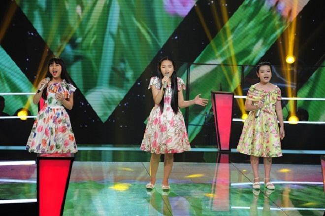 Tập 2 của vòng Đối đầu chương trình Giọng hát Việt nhí 2015 đã mang đến cho khán giả những tiết mục kết hợp ăn ý từ 3 team Cẩm Ly, Dương Khắc Linh và cặp đôi Lưu Hương Giang – Hồ Hoài Anh. Trong đó, đáng chú ý nhất là màn đối đầu của Khánh Linh – Phương Linh – Minh Hạnh (đội HLV Cẩm Ly) trong ca khúc Hà Nội 12 mùa hoa. Không chỉ thể hiện tốt cảm xúc của bài hát mà những thí sinh nhí còn gây xúc động khi nhường cơ hội đi tiếp cho nhau. Ảnh: Lý Võ Phú Hưng