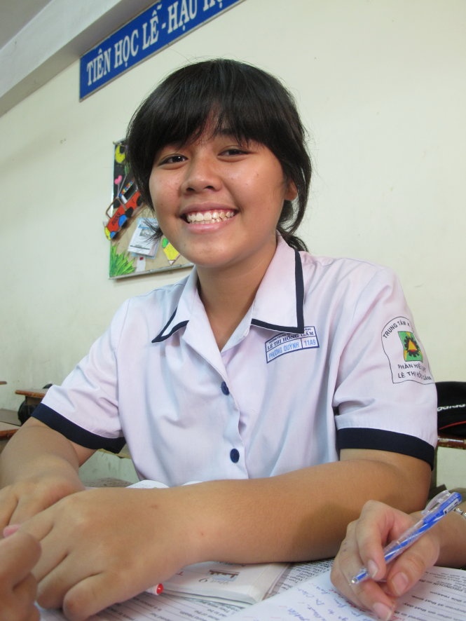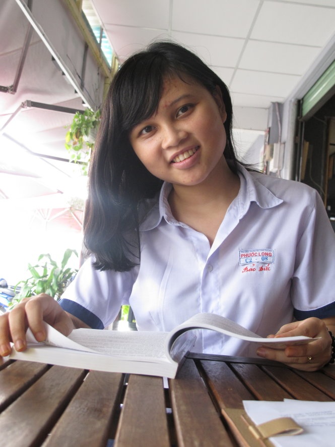 Gặp Nguyễn Thị Bảo Đức (lớp 12A2 Trường THPT Phước Long, quận 9) tại nhà sách ngay cạnh Nhà Thiếu nhi quận 9 vào trưa 6/12/2015 khi cô bạn vừa tan học, Bảo Đức cho biết tranh thủ giờ trưa đi xe buýt lên nhà sách tìm mua cuốn đề tuyển sinh môn sinh học về ôn luyện.