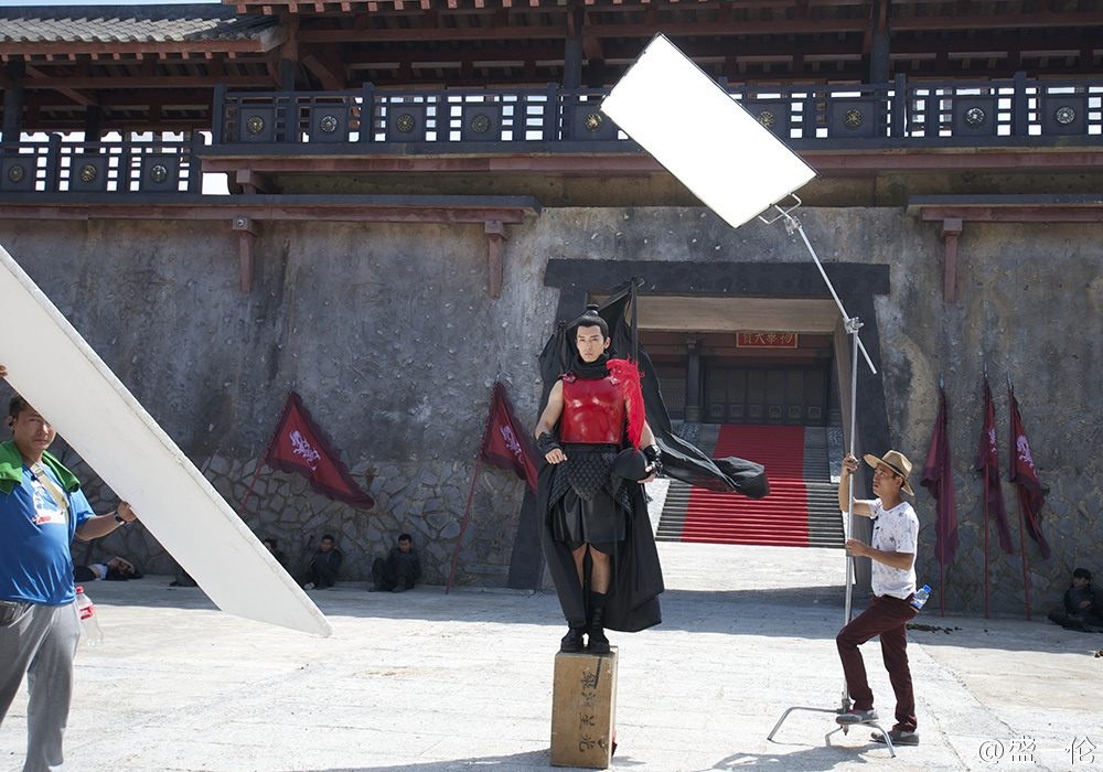 | Đạo cụ của đoàn làm phim đều là tự chế. Đây là cảnh Thái tử Tề Thịnh xuất hiện oai phong trên màn ảnh. Thực tế, hình ảnh khi quay không hề tráng lệ. |