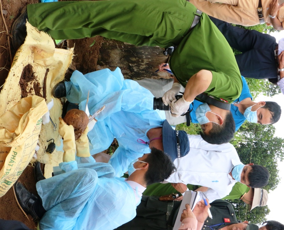 Ngày 30/8, người dân đi lên ngọn đồi thì phát hiện một phần thi thể của anh Vinh trồi lên mặt đất nên hoảng hốt trình báo công an. Do bị chôn hơn một tuần, thi thể nạn nhân bị phân hủy mạnh nhưng vợ anh Vinh vẫn nhận ra người chồng đã bị sát hại.