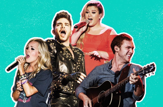 | Kelly Clarkson, Carrie Underwood, Adam Lambert và Phillip Phillips. (Ảnh: Billboard) |