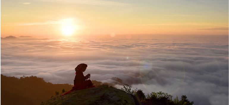 | Bình minh trên đỉnh Chiêu Lầu Thi, độ cao 2.402 m. |