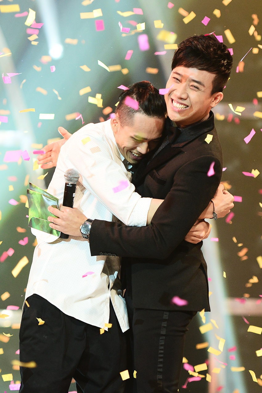 Trấn Thành chia vui cùng quán quân. |