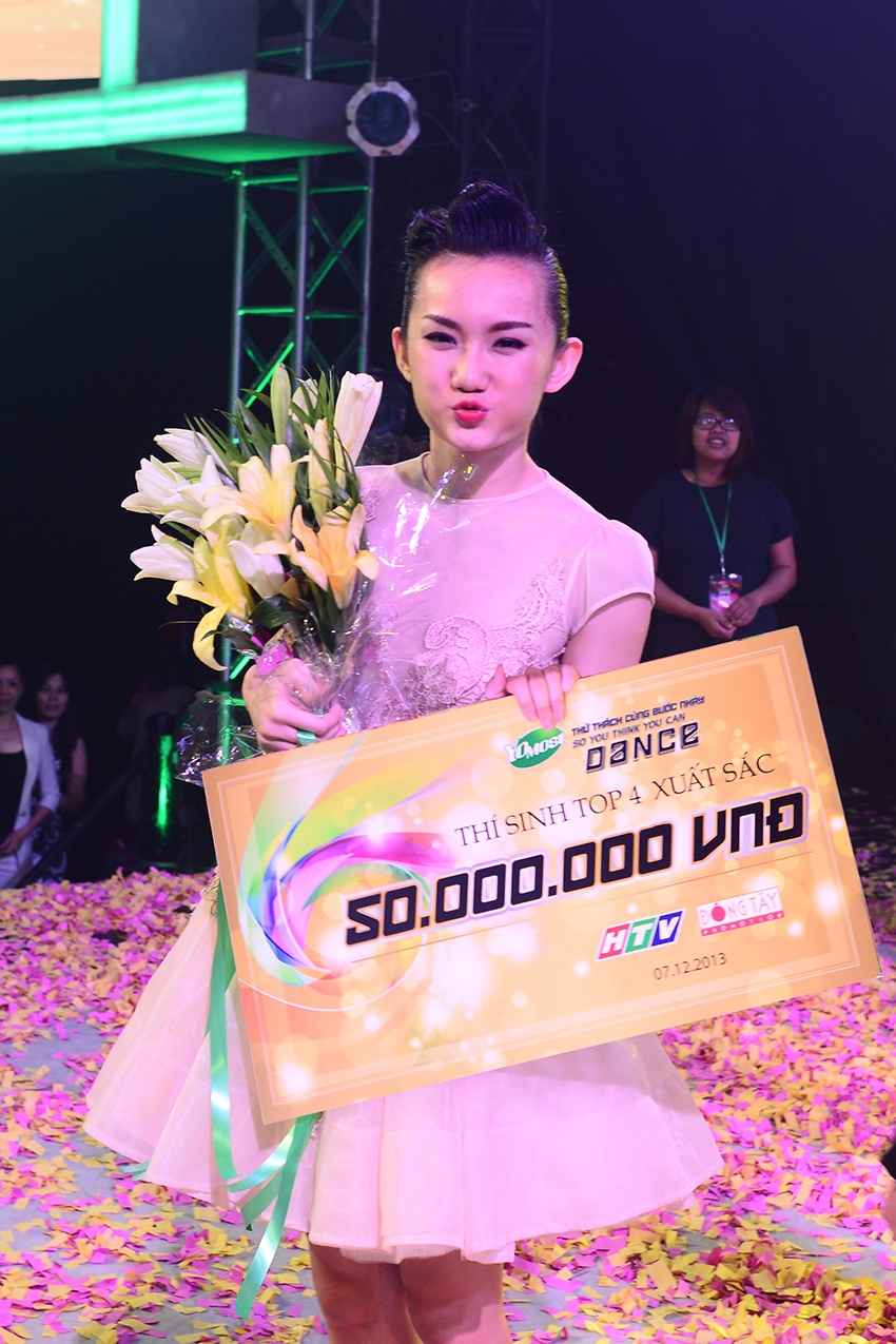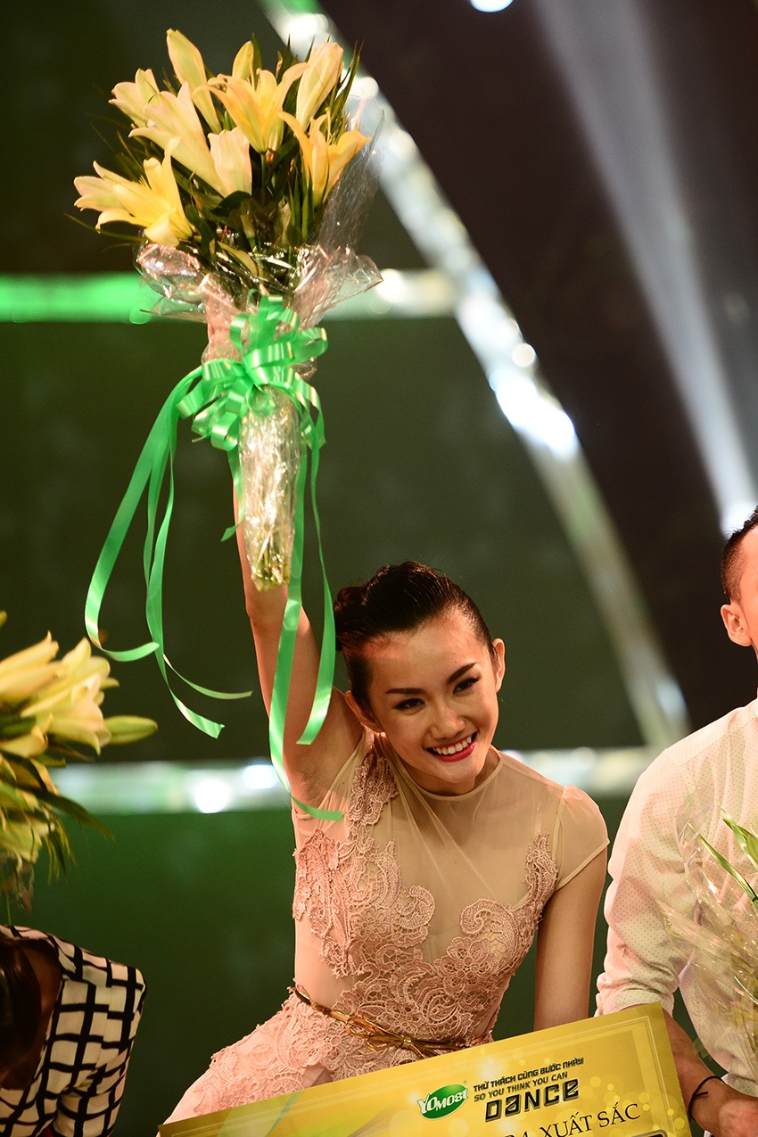 Ngọc Anh khóc trên sân khấu nhưng sau đó lấy lại nụ cười rạng rỡ. Cô gái Hải Phòng về vị trí thứ 4. |