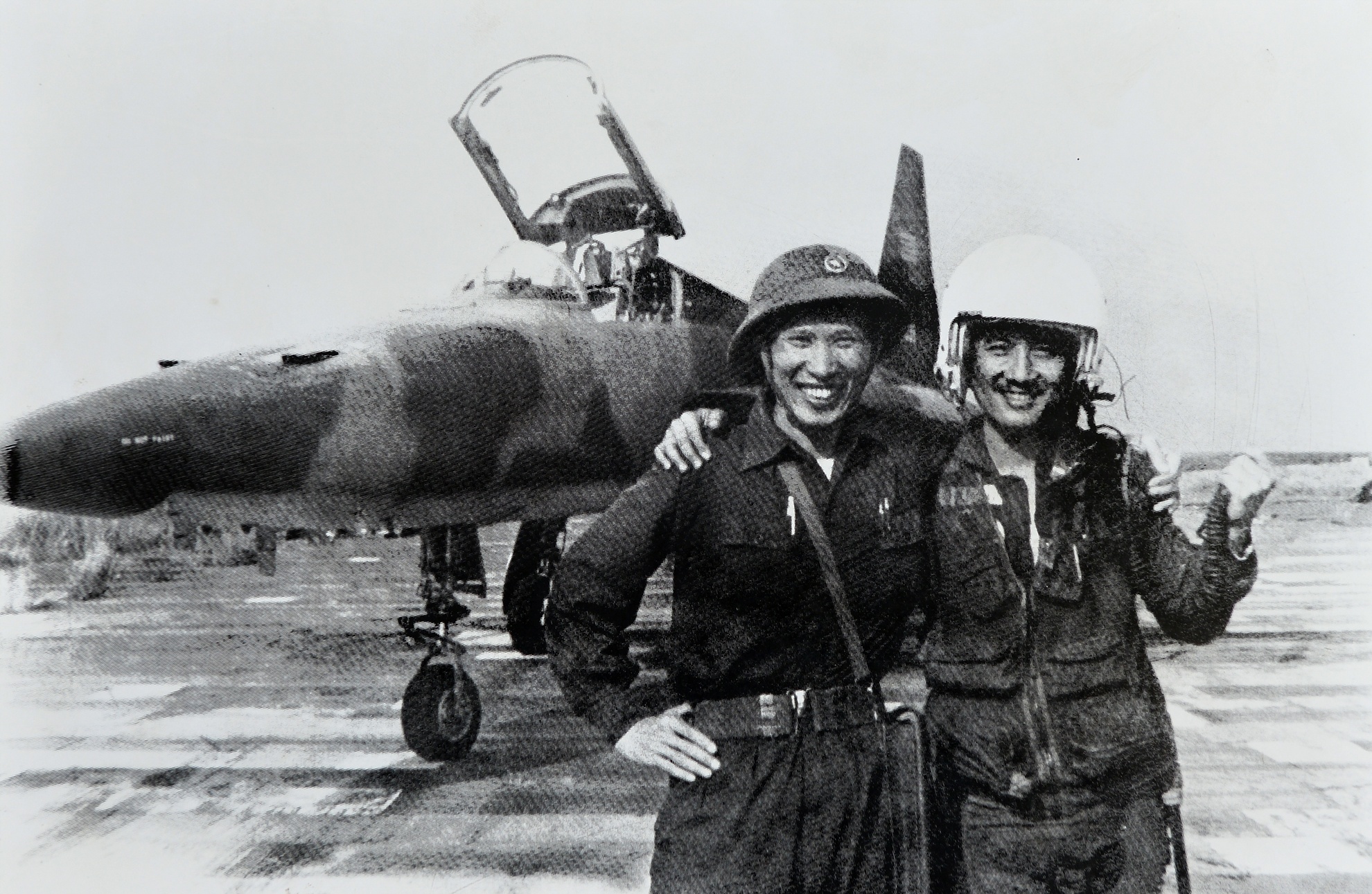 | Trung úy Nguyễn Thành Trung (phải) sau khi ném bom (4/1975). |