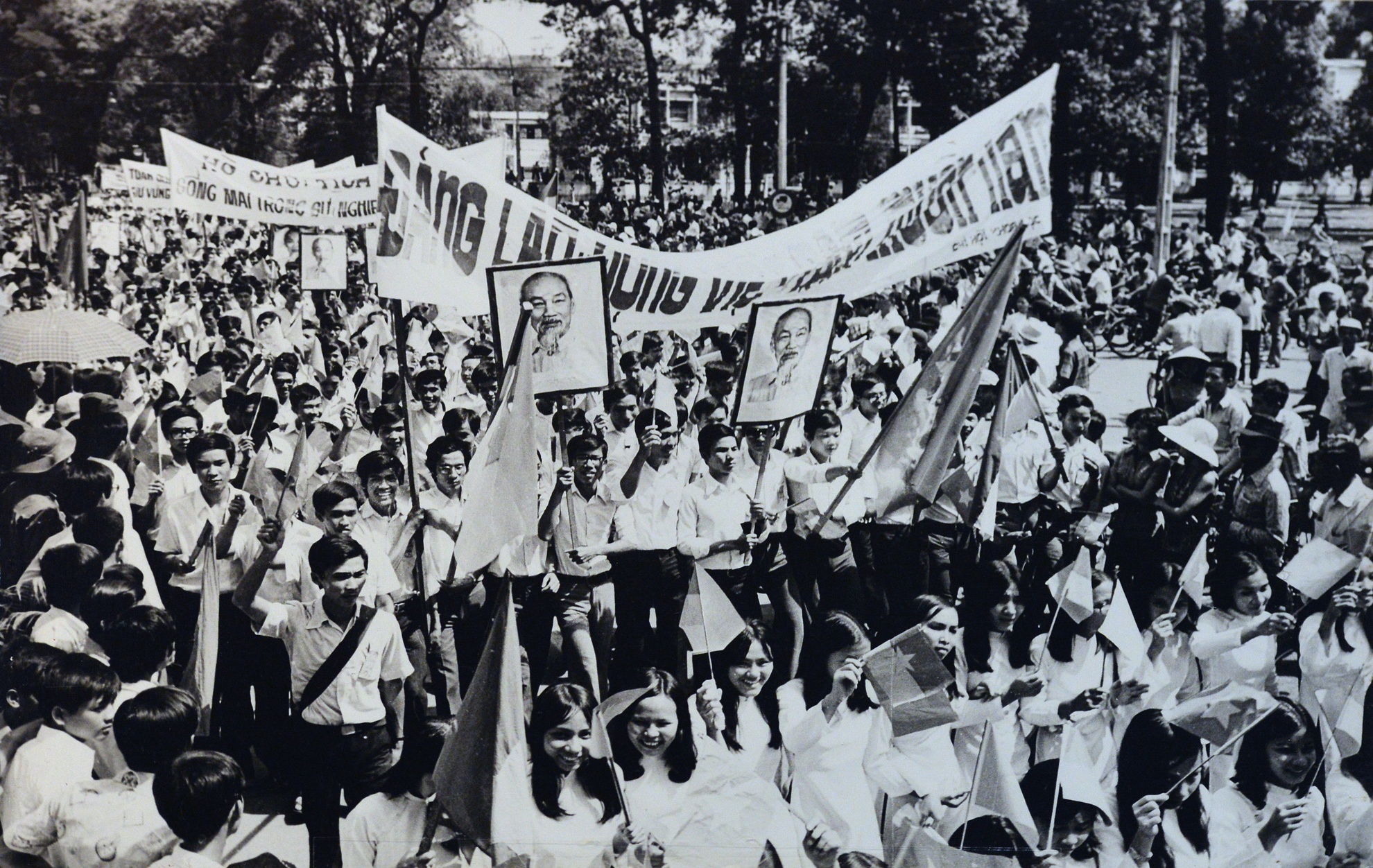 | Nhân dân Sài Gòn vui mừng đón chào chiến thắng. |