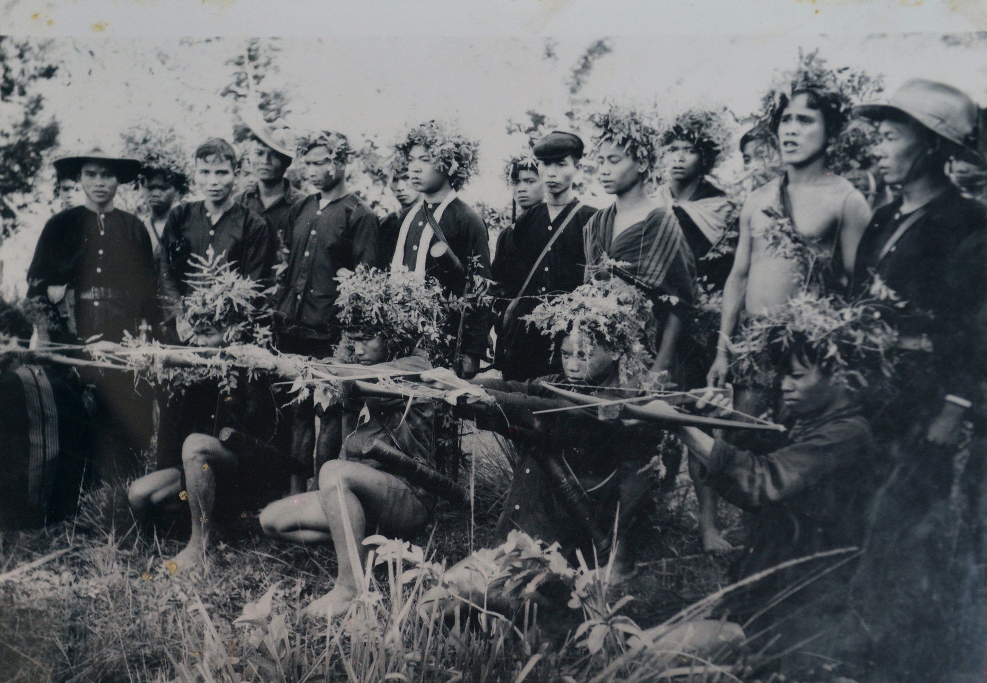 | Du kích Tây Nguyên với giáo, mác, cung, nỏ làm kẻ thù khiếp sợ. |