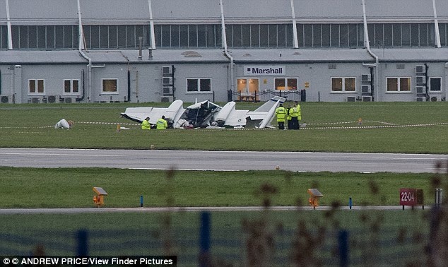 | Vụ tai nạn xảy ra tại sân bay Hawarden ở Flintshire, phía bắc xứ Wales khi một máy bay hạng nhẹ bất ngờ lao xuống vào khoảng 13h10 hôm 16/11. Ảnh: Trinity Mirror. |