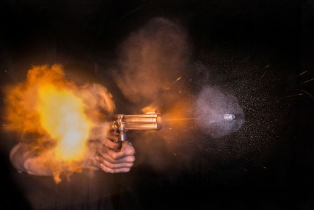 Súng lục ổ quay Smith & Wesson .500 nhả đạn. Đây là một trong những loại súng rất phổ biến trong những thế kỷ 19 và 20. Để chụp những bức ảnh độc đáo, Kuulapaa phải đặt các máy ảnh gần khẩu súng. Rất nhiều máy ảnh và ống kính của Kuulapaa hỏng khi chụp những bức ảnh này. Ảnh: CNA. |