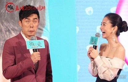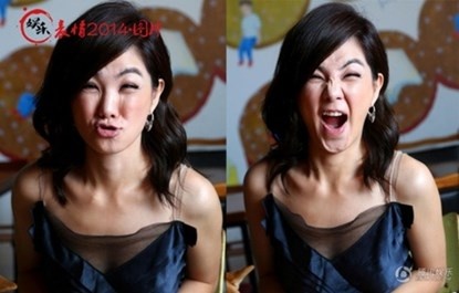 | Trong một chương trình truyền hình ở Bắc Kinh, anh chàng Trần Hách gây bất ngờ với điệu bộ "không thể xấu hơn" khiến cô nàng Angela Baby cười không ngớt. |