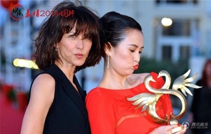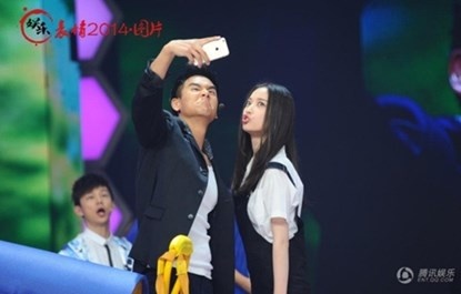 | Bành Vu Yến và Nghê Ni không ngại làm xấu khi chụp ảnh tự sướng tại sự kiện ngày 19/12/2014 tại Hồ Nam. |