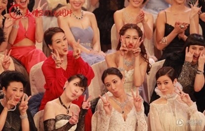 | Hình ảnh dàn sao nữ của đài TVB trong lễ trao giải cuối năm của đài này. Chính hình ảnh nhí nhảnh và hồn nhiên này của các nghệ sĩ đã được bình chọn là khoảnh khắc đáng chú ý nhất tại đêm trao giải TVB. |