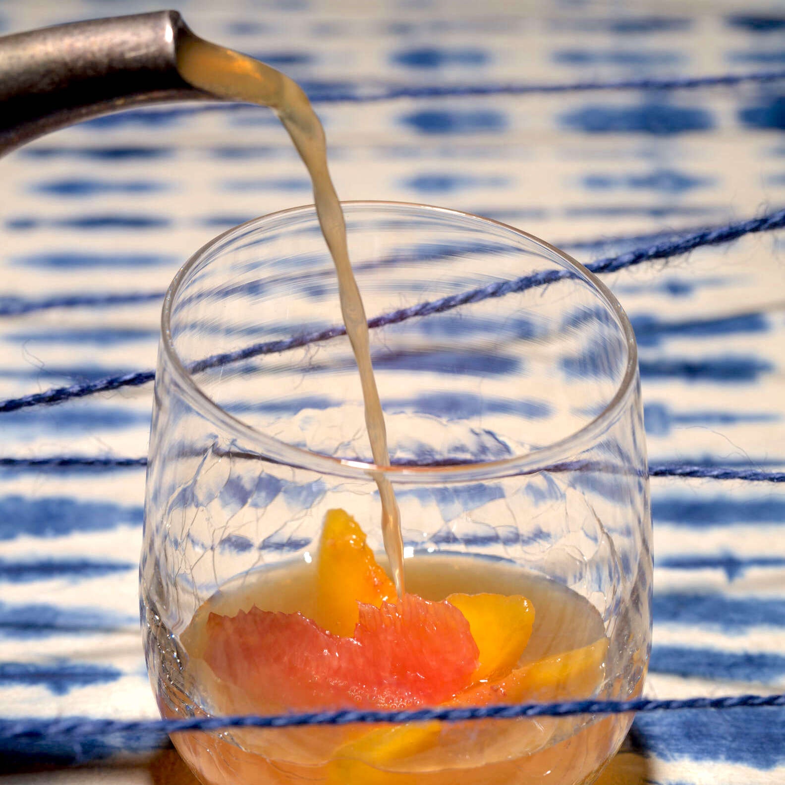 - Khi phục vụ trà, thêm nước ép bưởi và me vào. Thưởng thức sau khi thêm các múi bưởi đông lạnh vào mỗi ly.