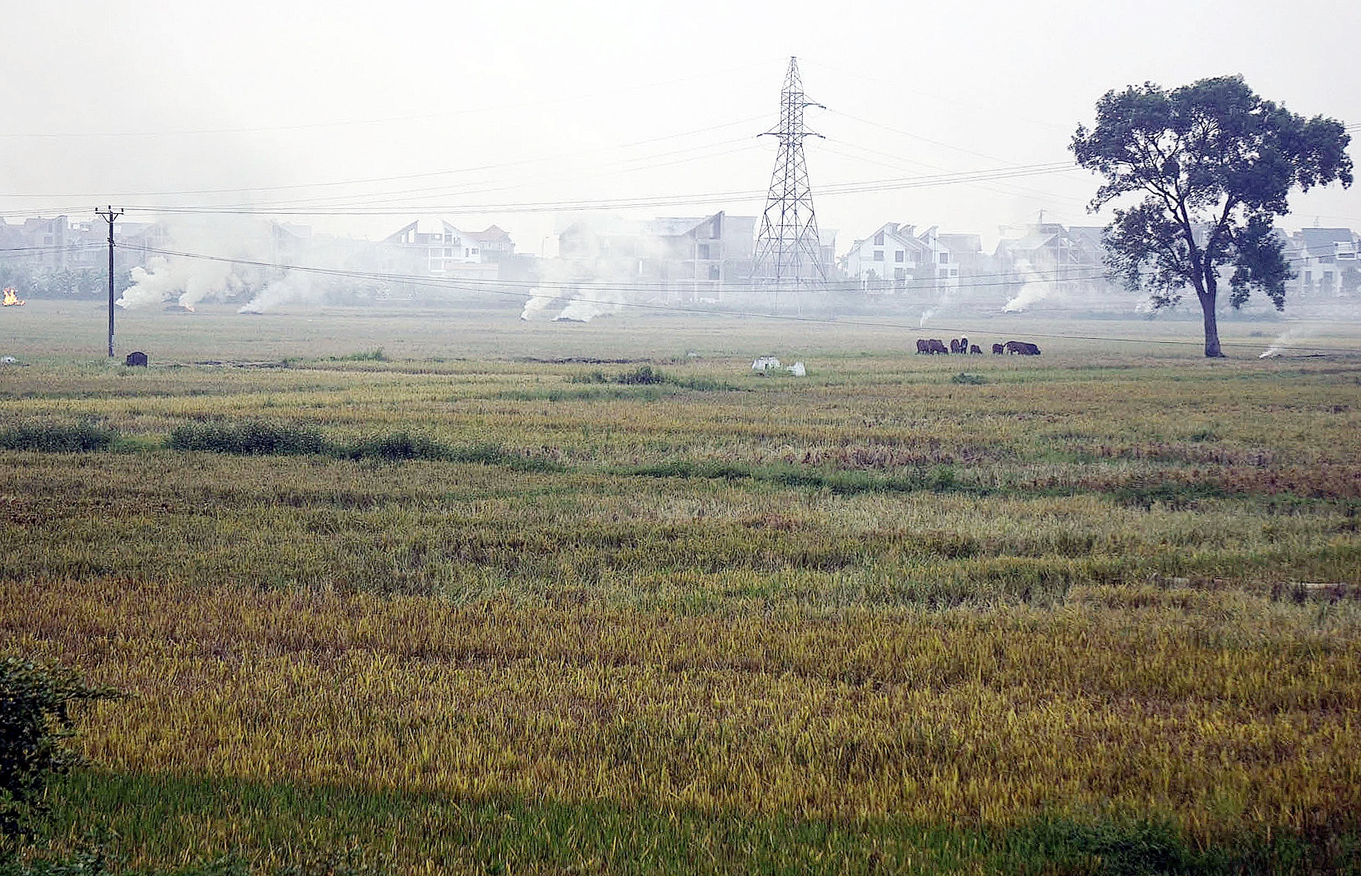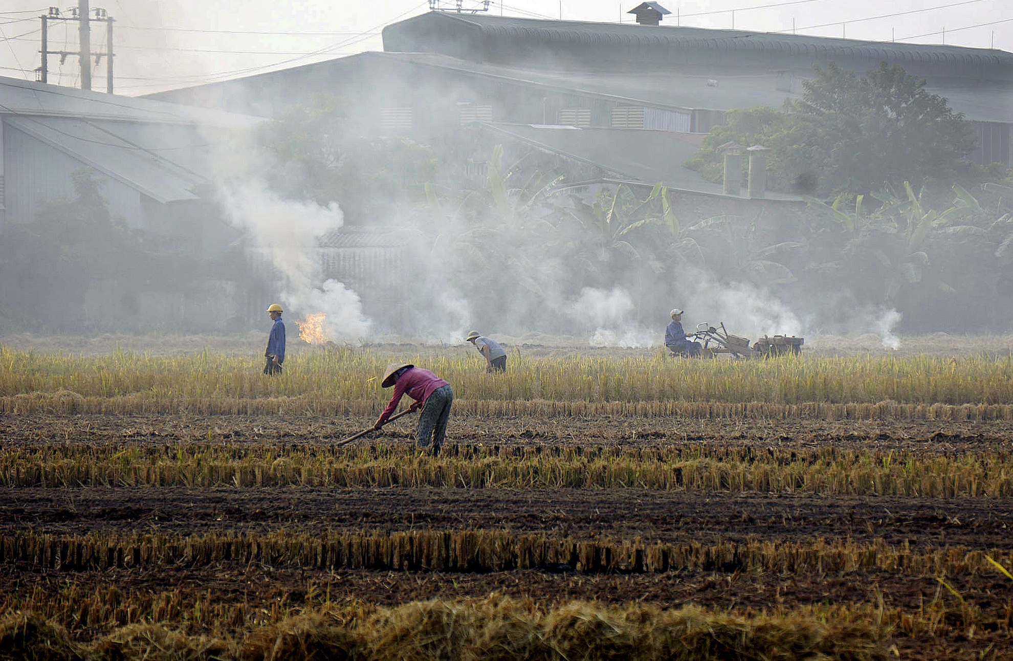 | Nhiều người cho rằng, khói mù xuất hiện trong những ngày qua là do người dân các huyện ngoại thành như Quốc Oai, Thạch Thất, Hoài Đức, Đông Anh... đốt rơm rạ gây ra. |