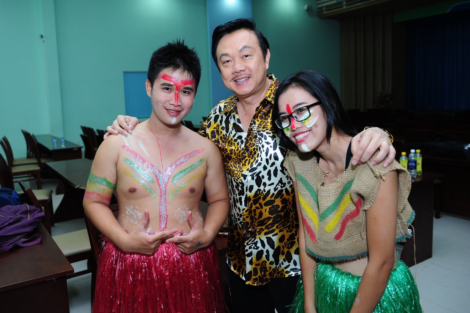 | Danh hài Chí Tài cũng là khách mời của sự kiện tối qua. Anh vui vẻ chụp hình với các bạn sinh viên sẽ biểu diễn tiết mục "cây nhà lá vườn". |