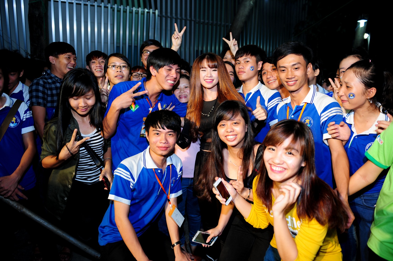 Tới tham dự buổi lễ khai giảng và chào đón tân sinh Đại học Văn Hiến TP.HCM tối 30/10, Khởi My bị bao vây bởi các khán giả trẻ.