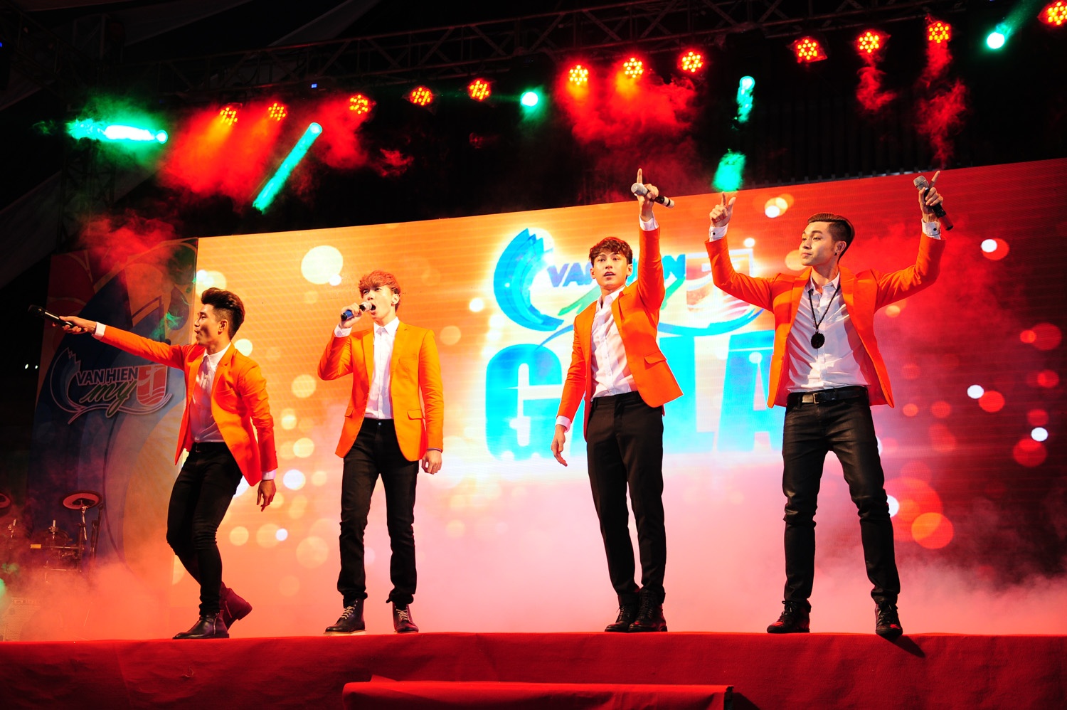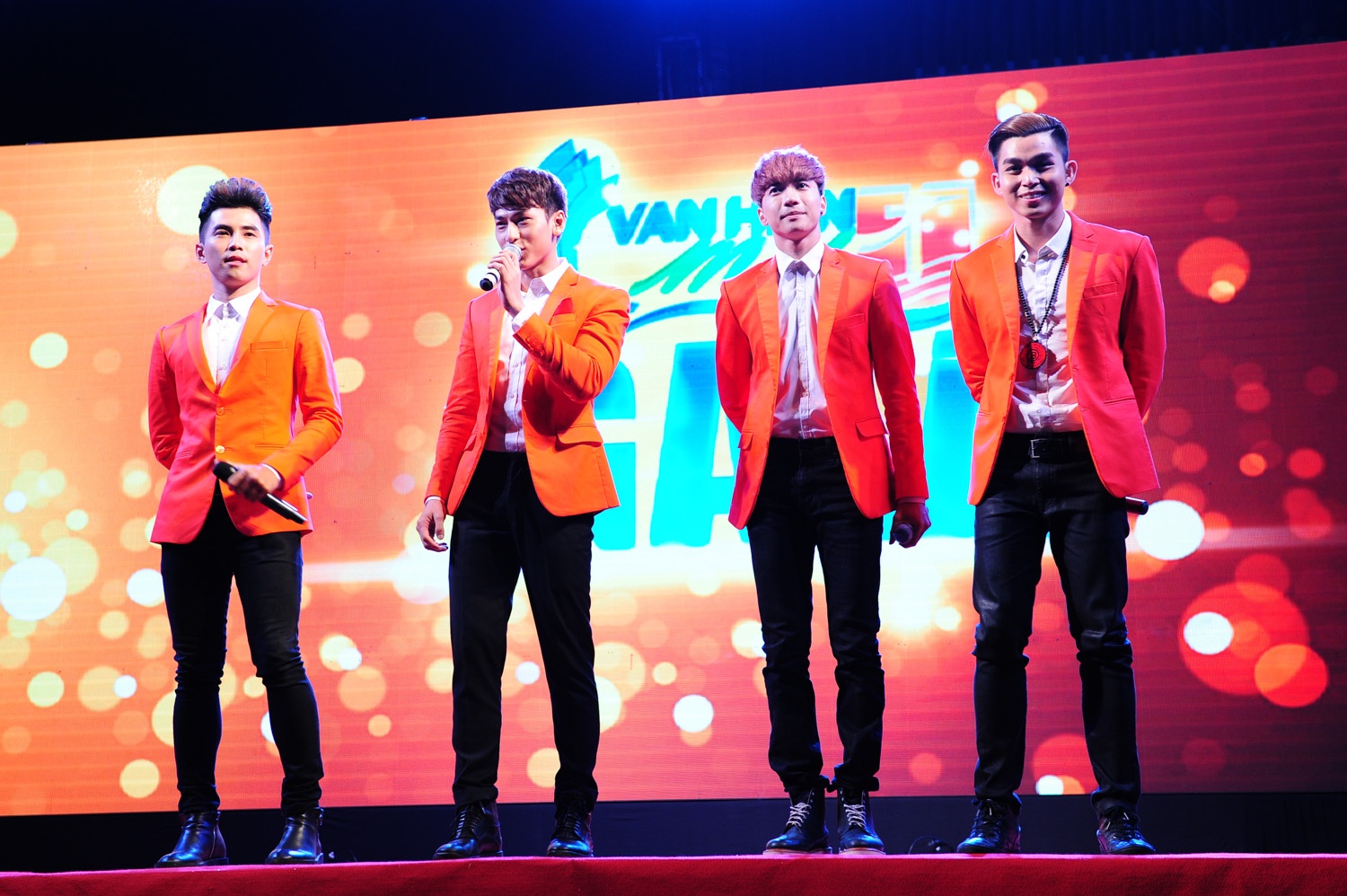 | 4 chàng trai cũng tích cực giao lưu với khán giả trẻ trên sân khấu. |