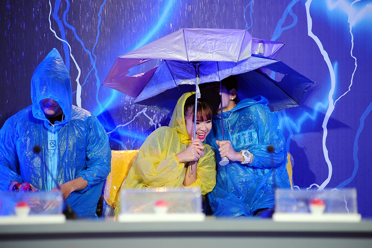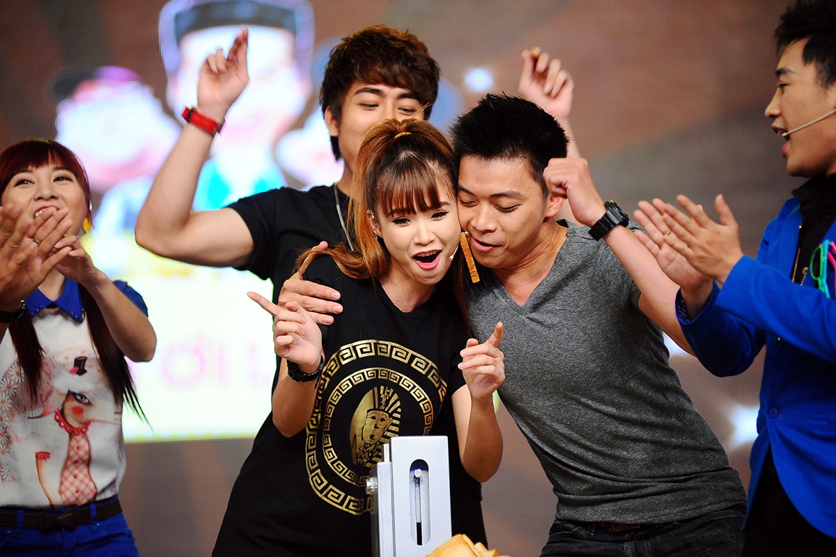 | Khởi My chia sẻ: “Thật ra tôi không thích ăn kem, đặc biệt rất sợ kem đậu xanh và sầu riêng. Nhưng chương trình lại cho ăn đúng ngay kem sầu riêng. Cố gắng ăn đến ly thứ hai, thật sự tôi đã bắt đầu muốn ói nhưng vẫn phải cố ăn tiếp ly thứ ba vì không thể làm xấu trên tivi được. Sau trò chơi này, về nhà tôi bị viêm họng và không nói được mấy ngày luôn”. |