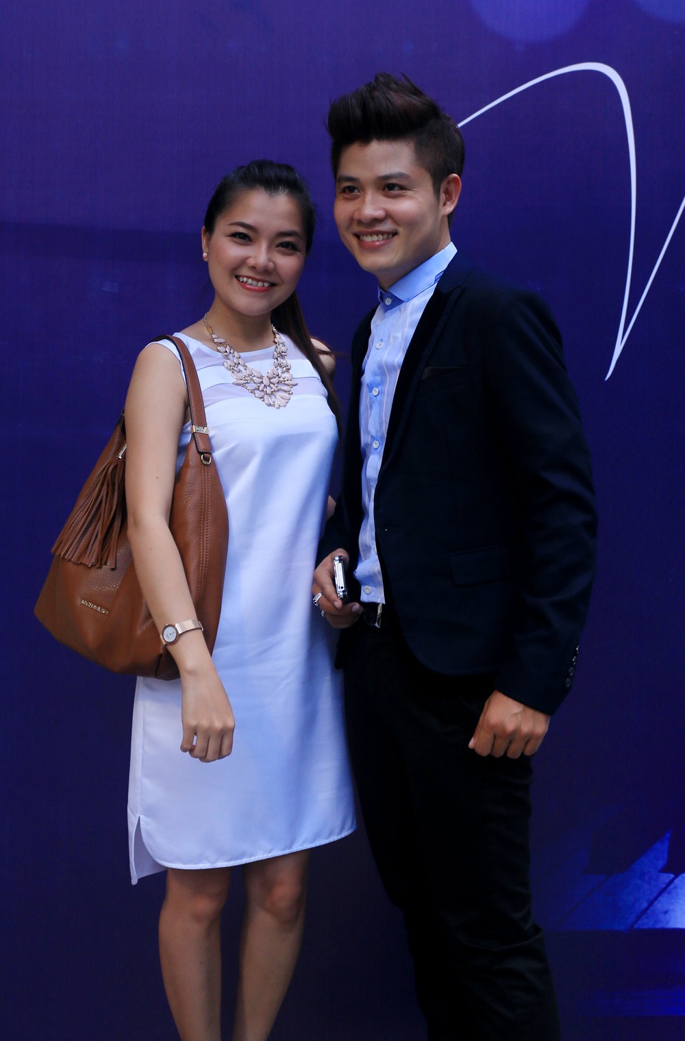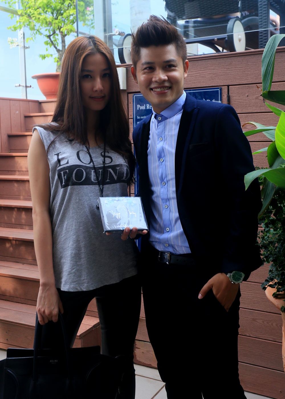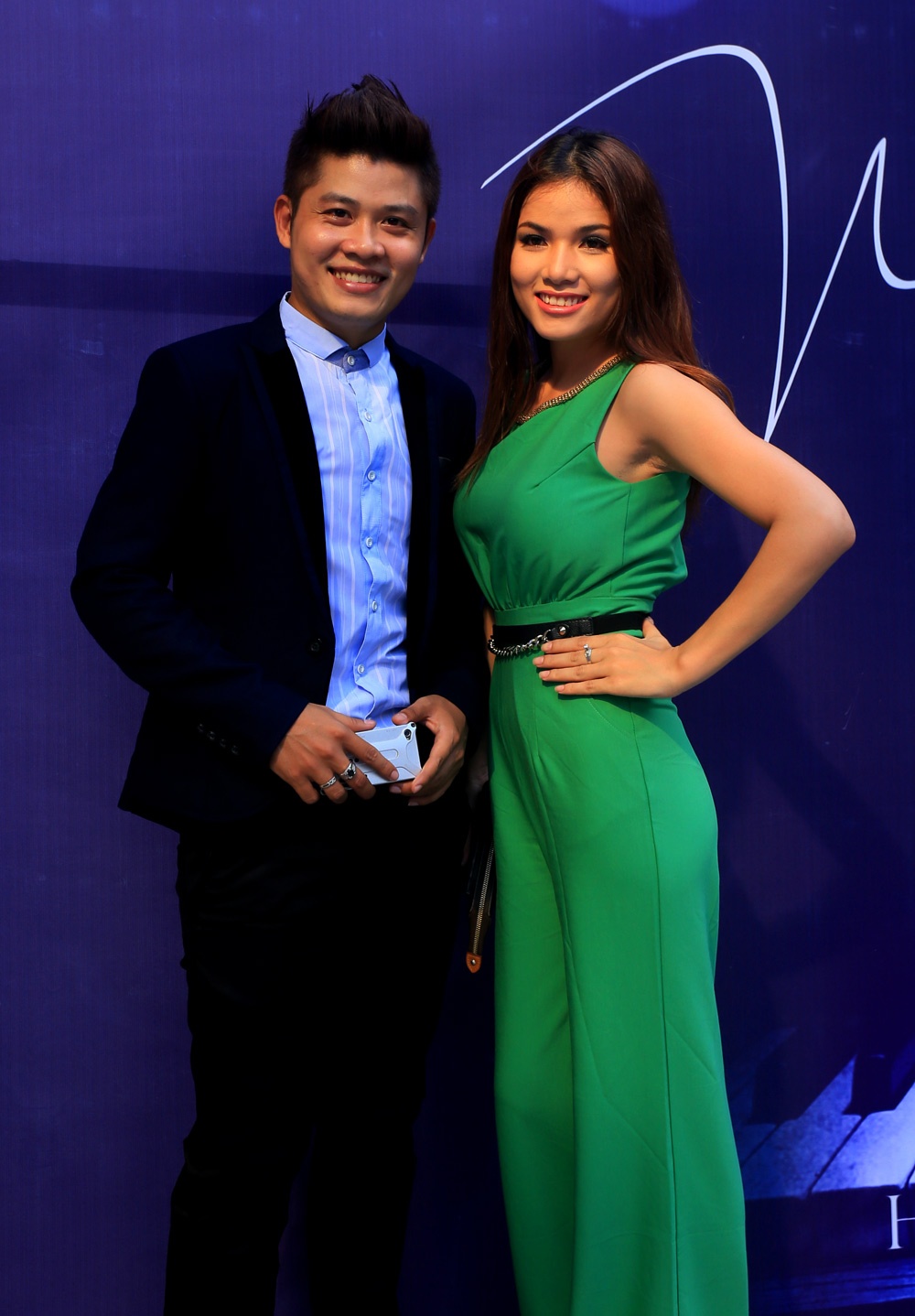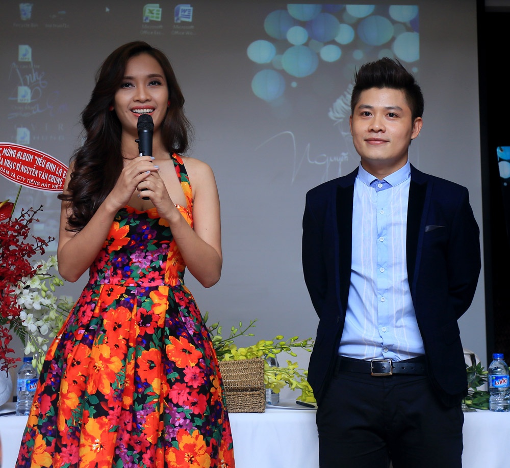Diễm My 9X và Nguyễn Văn Chung. Cô là khách mời trong buổi họp báo. |