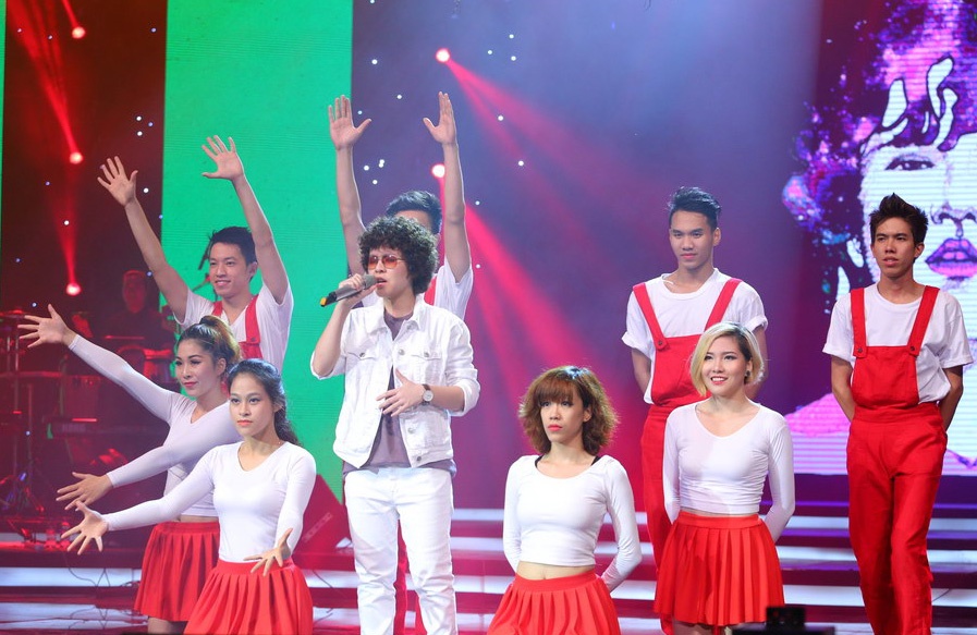 | Bước ra từ cuộc thi Vietnam Idol, Thanh Tùng ngày càng hoàn thiện về giọng hát. Dù không đi diễn trên các sân khấu lớn nhưng hot boy wushu vẫn biểu diễn khá tự tin khi thể hiện Bài ca lãng du. Hình ảnh này của Thanh Tùng khiến nhà báo Hà Sơn thích thú. |