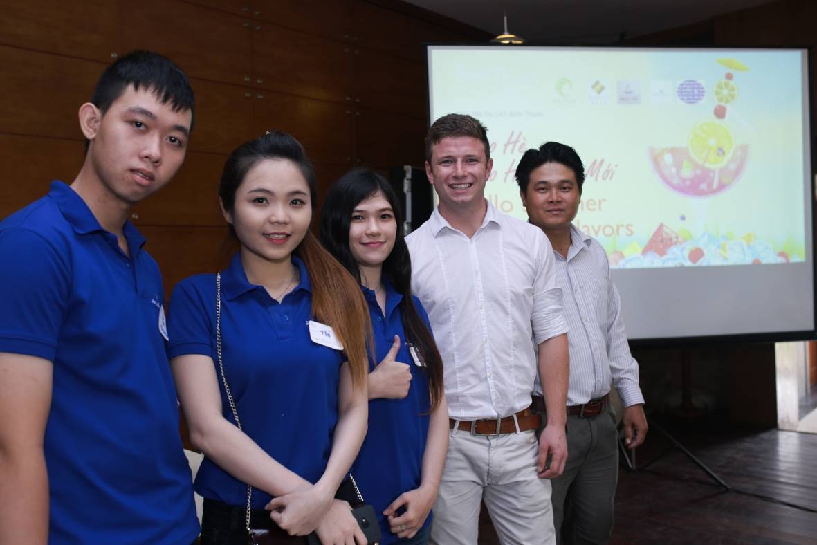 | Học viên Khởi nghiệp bartender 2014 giao lưu cùng bartender Trần Minh Trong - giảng viên Novotel quốc tế, và ông Paddy Beauchamp - trường Dublin, College of Arts and Tourism, Ireland Trong chương trình - Hello Summer - The New Flavors do chi hội đầu bếp và pha chế Ninh Thuận tổ chức |