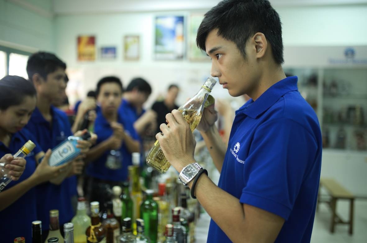 | Học viên Khởi nghiệp bartender 2014 trong giờ thực hành. |
