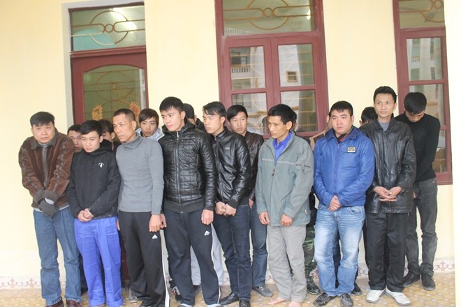 Trong số đó, Vũ Khắc Sơn (SN 1991), Bùi Đức Lợi (SN 1992), Vũ Hữu Duy (SN 1995) và Phạm Duy Long (SN 1989) bị khởi tố tội tổ chức đánh bạc; Bùi Thị Loan (SN 1971) và Vũ Đức Trí (SN 1968) bị khởi tố tộ chứa chấp. Riêng Sơn, Duy và Long còn bị khởi tố thêm tội danh tàng trữ, vận chuyển trái phép vũ khí quân dụng.