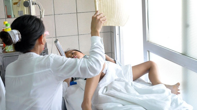| Cháu Kiều Thị Xuân Mai đã được đưa về bệnh viện đa khoa huyện Quốc Oai để tiếp tục điều trị. |