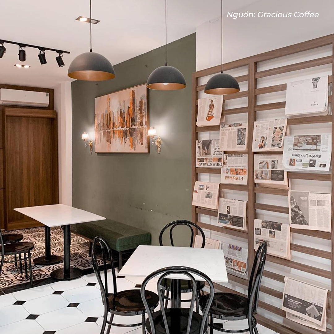 Khi tôi hỏi về một không gian yên tĩnh phù hợp làm việc, người bạn thời đại học giới thiệu Gracious Coffee. Ấn tượng đầu tiên của tôi là không gian bình yên. Khi tôi đến, quán không có quá nhiều khách, đa phần ngồi một mình hay tập trung nhóm làm việc.