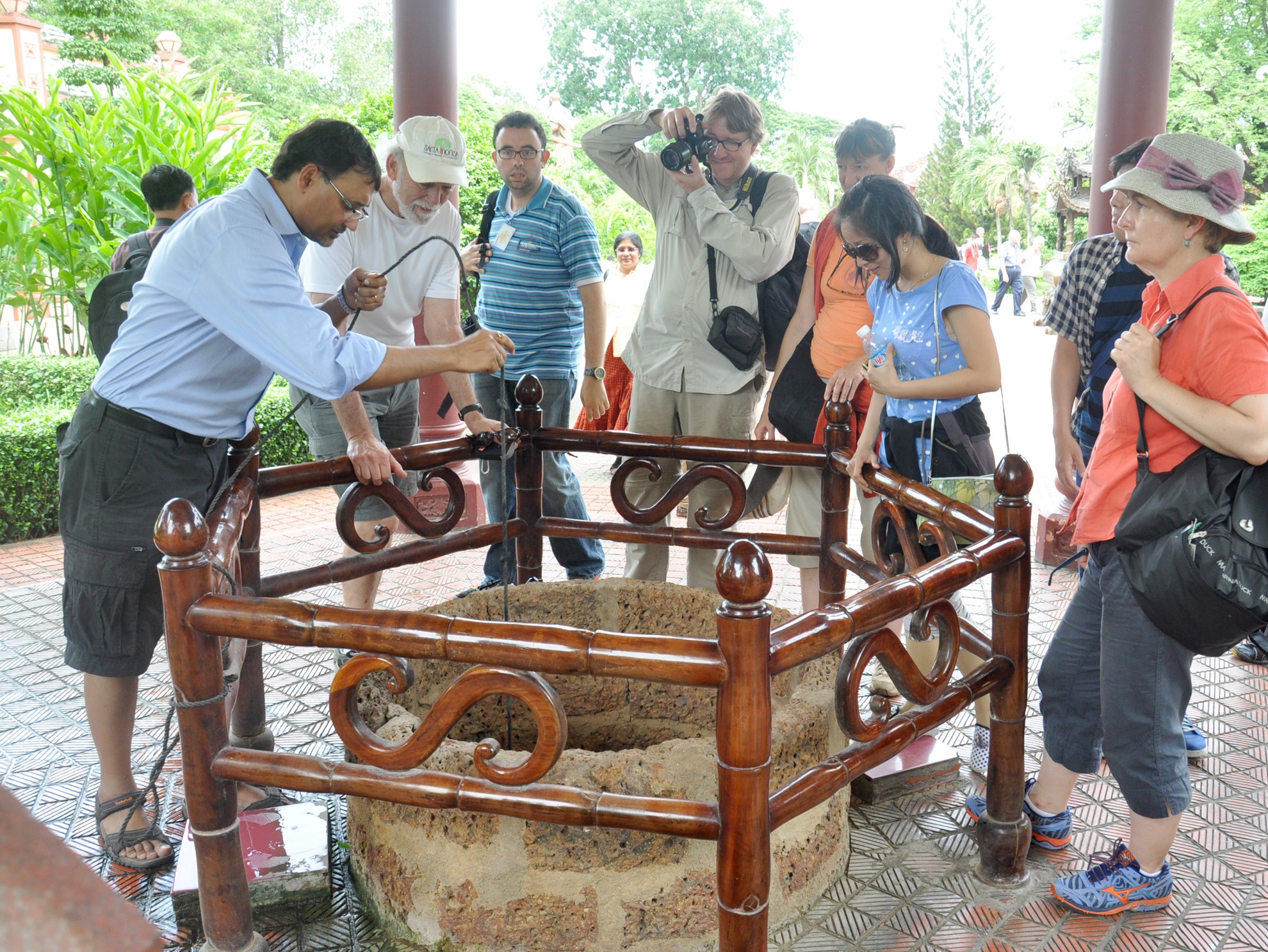 | Các nhà khoa học quốc tế thích thú bên giếng cổ ở Bảo tàng Quang Trung.Thống kê của Sở Văn hóa - Thể thao - Du lịch Bình Định, 6 tháng đầu năm có khoảng 1,7 triệu du khách trong nước và quốc tế đến tham quan quê hương "đất võ, trời văn", tăng 30% so với cùng kỳ năm ngoái đạt doanh thu hơn 721 tỷ đồng. |