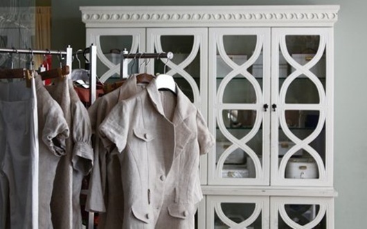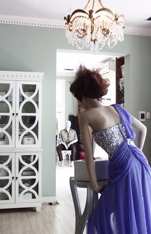 Ngoài không gian sinh hoạt, Hoàng Ngân còn dành một phần trong ngôi nhà để làm việc và trưng bày các bộ sưu tập. Xung quanh không gian làm việc và cửa sổ, chị trang trí nhiều ma nơ canh và trang phục cá tính.