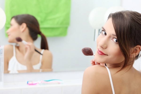 Mỹ phẩm trang điểm thường chứa nhiều hàm lượng oxít kẽm, dimethicone và propylene. Những chất này sẽ tạo nên một lớp màng mỏng trên da khiến dầu, mồ hôi bị tắt nghẽn ở lỗ chân lông gây ra mụn viêm. Như vậy, nếu bạn đang bị mụn, trang điểm càng khiến tình trạng nghiêm trọng hơn. Thêm vào đó, những chất này cũng tác động ngăn trở sự tái tạo da khiến da mau lão hoá.