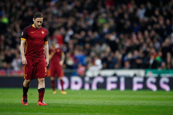 | Totti chào tạm biệt Champions League bằng một trận thua. |
