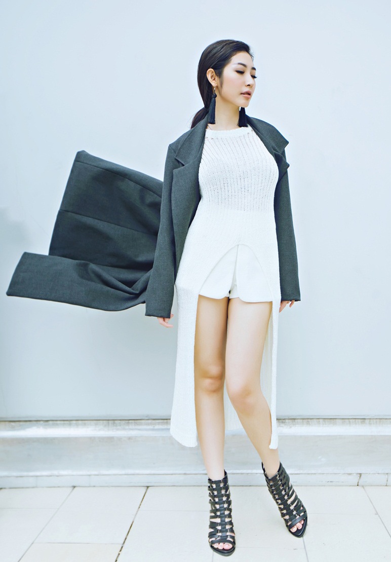 Khi thực hiện bộ ảnh giới thiệu phong cách đường phố, nữ ca sĩ sinh năm 1991 chọn set đồ lịch thiệp và không kém phần quyến rũ.