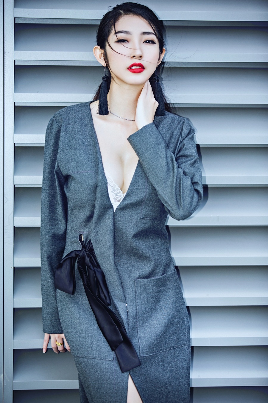 | Một trong những phong cách đang thịnh hành được Khổ Tú Quỳnh ứng dụng hiệu quả. Thiết kế cổ chữ V sâu mang đến sức hấp dẫn khi người đẹp dạo phố. |