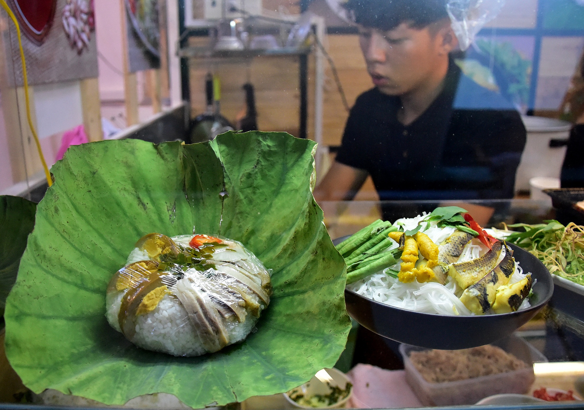 | Món ăn vùng miền cũng xuất hiện tại đây như xôi chả mực Hạ Long, bún cá, cơm tấm... |