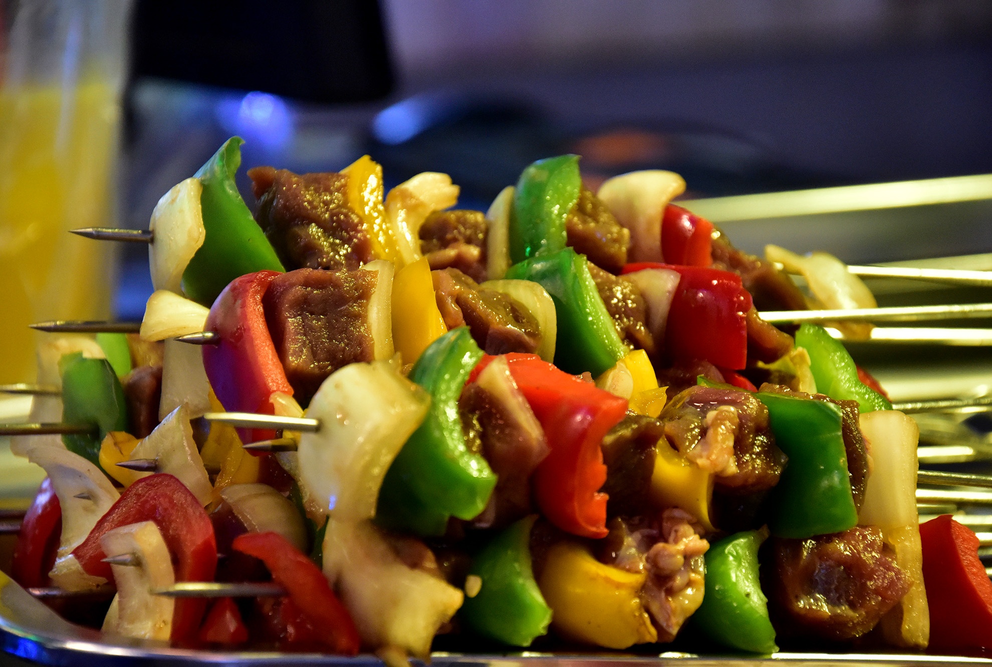 | Những xiên nướng thịt, rau, củ quả sẵn sàng lên bếp nướng phục vụ thực khách. |