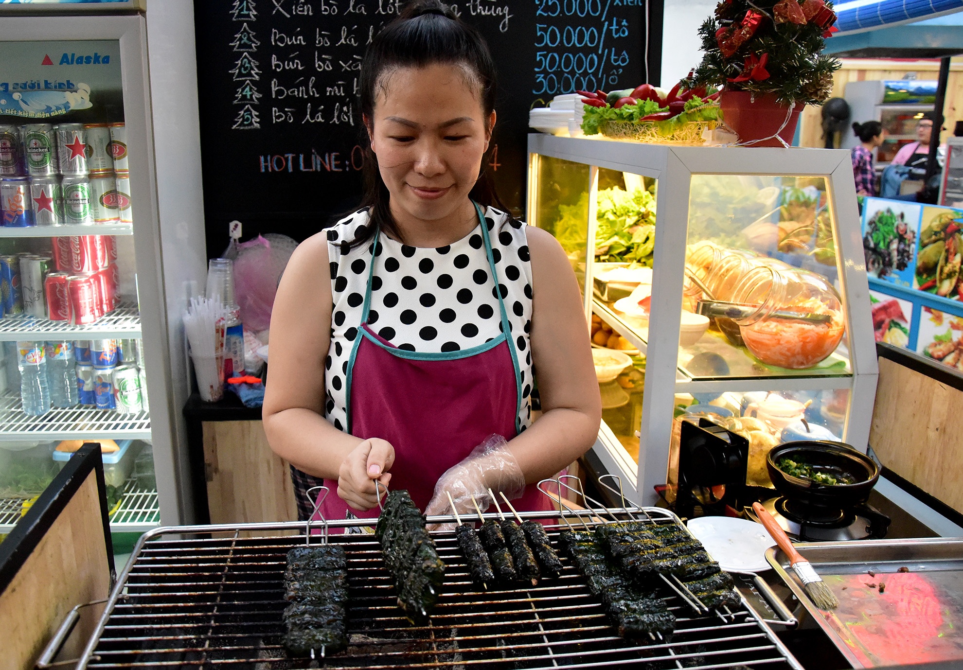 | Với phong cách đường phố nhưng đảm bảo không gian sạch sẻ, quản lý chặt chẽ về chất lượng món ăn và an toàn thực phẩm, chị Ngọc (chủ quầy chả lá lốt Anh Sáu) hy vọng sẽ kinh doanh lâu dài tại khu chợ này. |