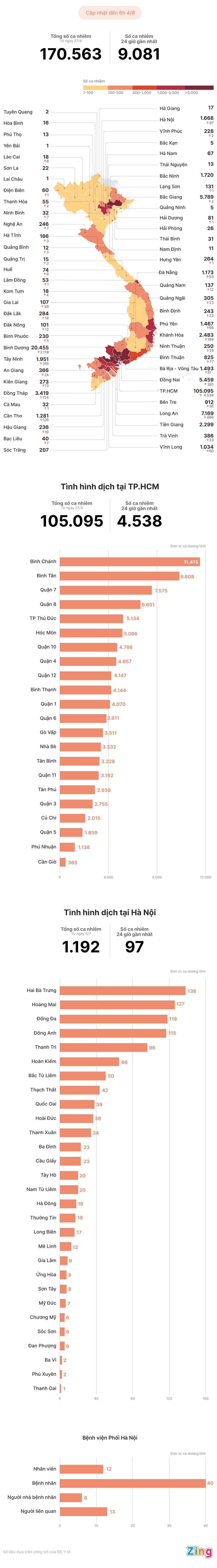 Từ ngày 27/4 đến nay, Việt Nam ghi nhận 170.563 người mắc Covid-19. Đặc biệt, dịch tại TP.HCM và Hà Nội đang diễn biến phức tạp.