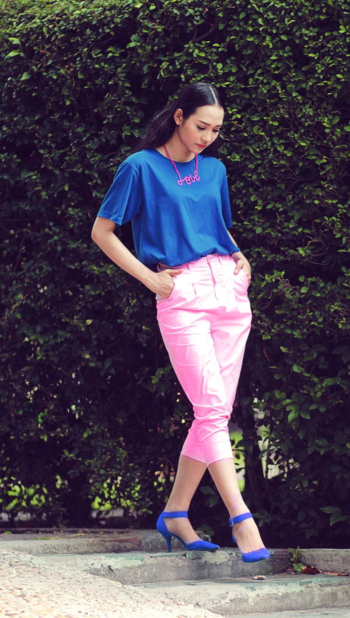 | Hai gam màu xanh dương và hồng pastel tưởng chừng sẽ khiến bạn trở nên nhẹ nhàng, nữ tính quá mức, thậm chí là sến, nhưng chỉ cần một chút điều chỉnh, bạn sẽ mang đến một phong cách mới. Như với cách phối đồ theo style men swear này, bạn sẽ khiến cho tất cả mọi người phải chú ý đến mình. |