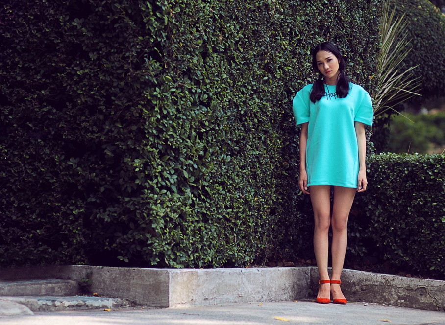 | Chiếc váy xanh pastel (màu hot xuân hè năm 2014) dáng oversize giúp các cô gái thoái mái hơn trong những ngày hè nóng bức. |