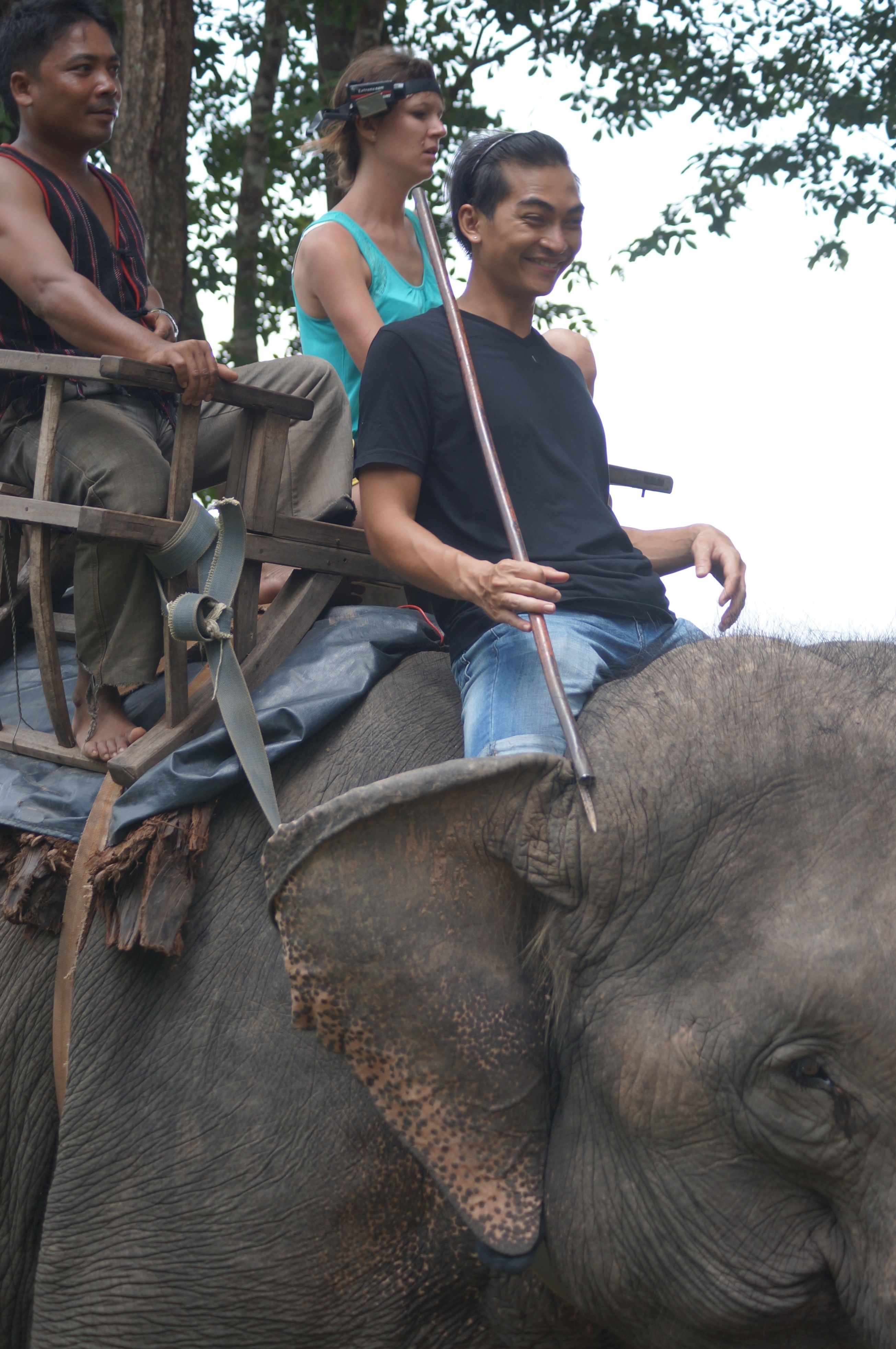 | Khương Ngọc “chóng mặt” trên lưng nàng voi. |