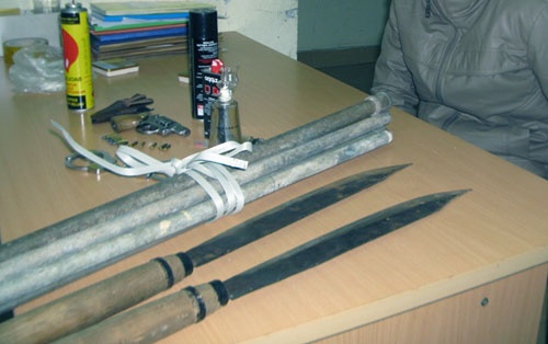 Ngoài ra, một lượng ma túy tổng hợp và ma túy đá cùng bộ dụng cụ sử dụng ma túy đá cũng được lực lượng chức năng phát hiện. Đặc biệt tổ công tác còn tìm thấy 2 con dao dài gần 1m (loại dao phớ), 5 ống tuýp sắt, bình xịt hơi cay và 1 chiếc còng số 8 được giấu trong ống quần bò.