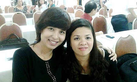 | TS Hương (bên phải) chụp chung với đồng nghiệp. |