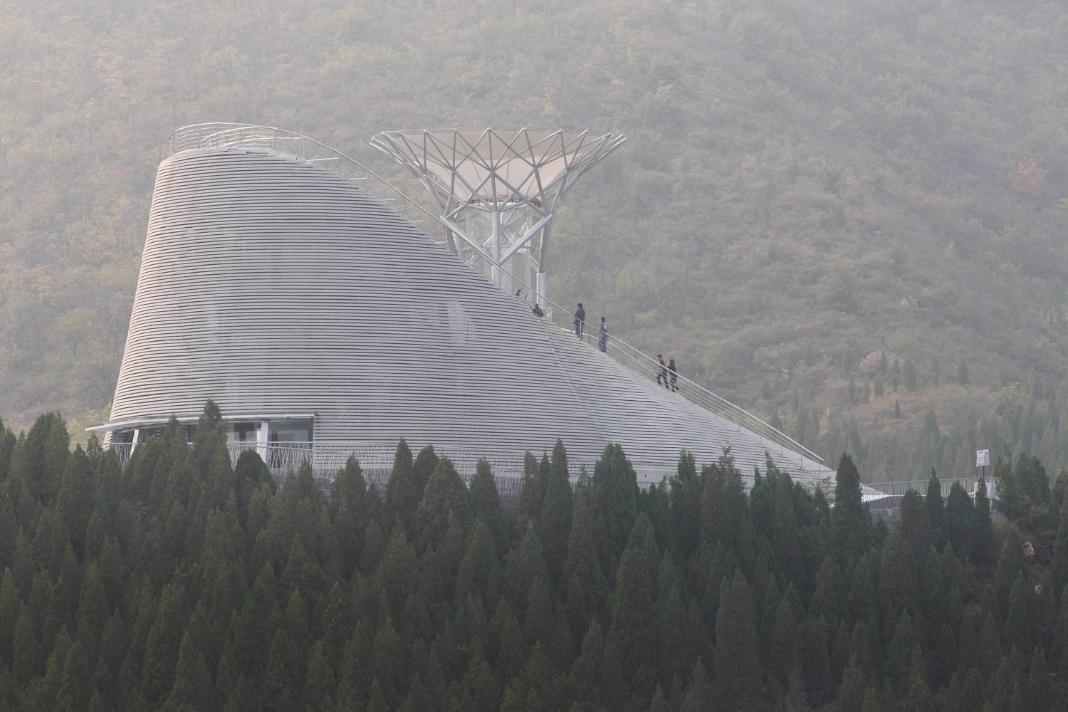 Kiến trúc sư xây dựng cho biết: "Công trình là sự kết hợp giữa kỹ thuật xây dựng hiện đại và cổ xưa. Kiến trúc thượng tầng bằng thép cắt laser hỗ trợ, nâng đỡ các bậc thang đá làm hoàn toàn thủ công". Tòa nhà có 4 khu chức năng cơ bản là bề mặt bên ngoài, sân khấu, khu vực bên trong và phòng động cơ.