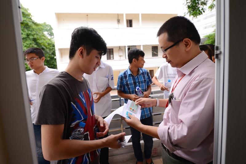 | Thí sinh làm thủ tục bước vào môn thi cuối. |