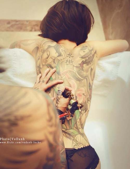 | Nhưng sau đó, khi bước vào nghề thợ xăm, nghiên cứu nhiều về nghệ thuật xăm cô mới thấy hình ảnh nhiều hoa bướm không có ý nghĩa gì với bản thân mình. |