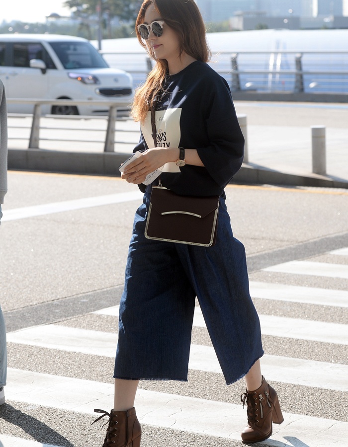 | Người đẹp Sung Yuri diện sweatshirt cùng quần ống loe cách tân và đính kèm loạt phụ kiện cực thời thượng. |