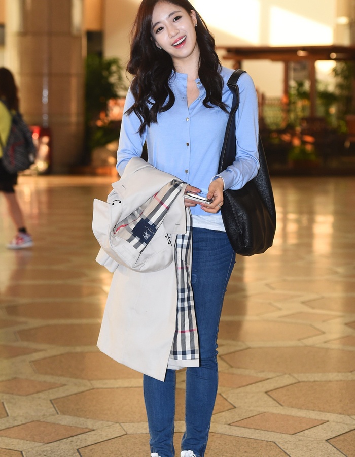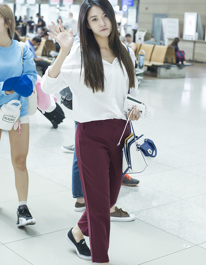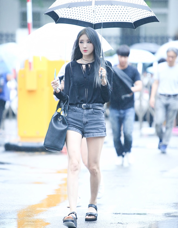 | Kính mắt và clutch được Minah (Girl’sDay) chọn làm điểm nhấn ấn tượng cho phong cách casual. |