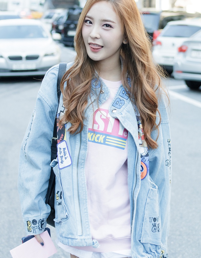 | Namjoo (Apink) nhanh tay lăng xê cơn sốt áo khoác mang tên bomber jacket. |